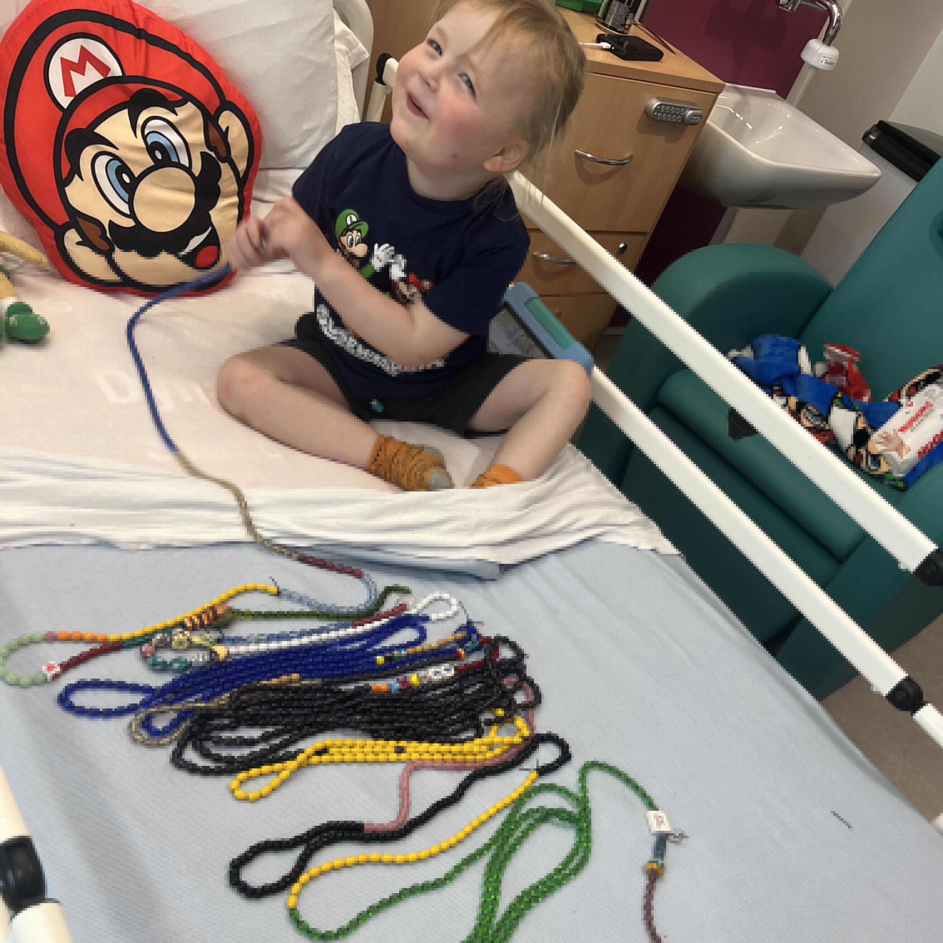 Now, he is back on treatment, facing round two of beating cancer. He has already collected his beads of courage from his first battle - each bead representing a procedure, a test, a treatment, or a milestone—and now they have begun his second collection.