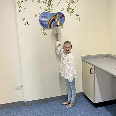 Then, on the 9th of October, after six long months of chemotherapy and surgery earlier in the year, Mia rang the bell, marking the end of her cancer treatment!