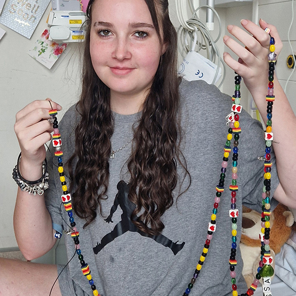 "She received her beads of Courage on the haematology/oncology ward and through them was able to keep track of her progress and bravery, they also proved a welcome distraction."