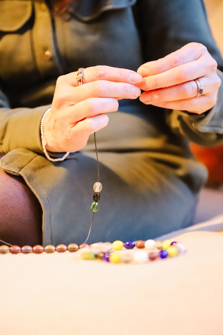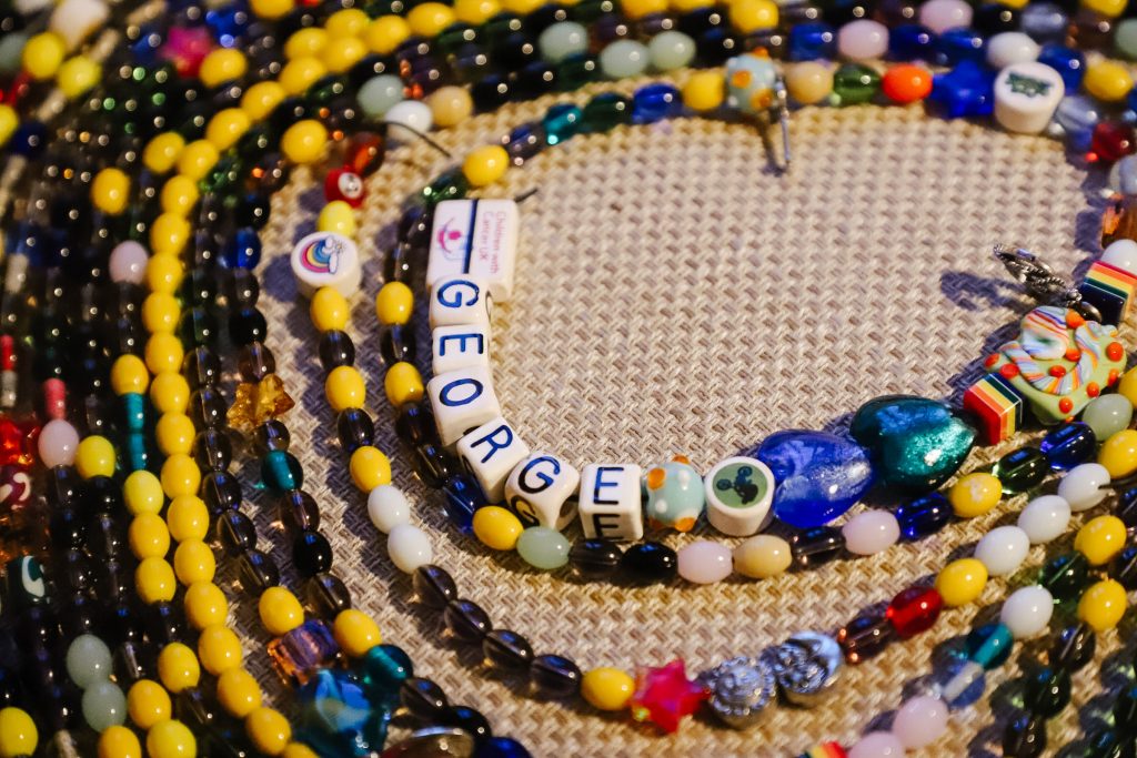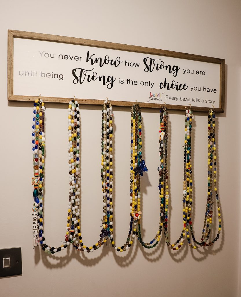 Here you see a mother, threading her son’s last beads. Hope lead us to believe that George would love these beads forever, and use them to tell his story. Now the beads are a parents reminder of the journey that was endured with strength, love and (unexpectedly) joy.